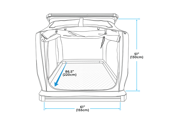 - Vnitřní rozměry: 216,5 cm D x 154 cm Š x 133 cm V
