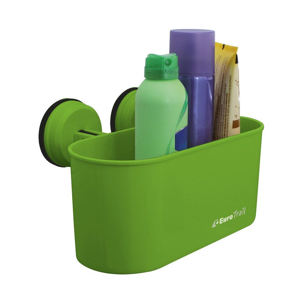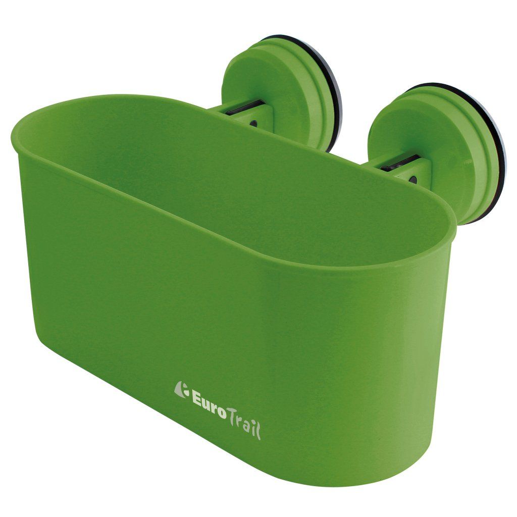 EUROTRAIL Držák oválný s přísavkou, zelený je praktický pomocník pro snadnou organizaci drobností v koupelně, kuchyni i karavanu. Díky silné přísavce jej jednoduše připevníte na jakýkoli hladký povrch bez vrtání a poškození stěn. Držák nabízí vysokou nosnost až 6 kg, takže bezpečně udrží kosmetiku, toaletní potřeby, utěrky nebo další drobné předměty, které chcete mít vždy po ruce. Moderní oválný design a svěží zelená barva se snadno hodí do každého interiéru doma i na cestách.