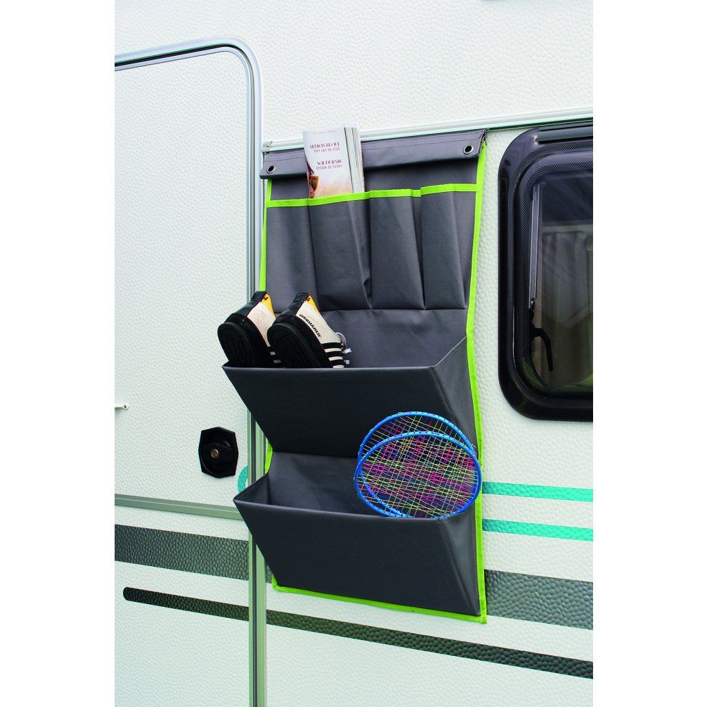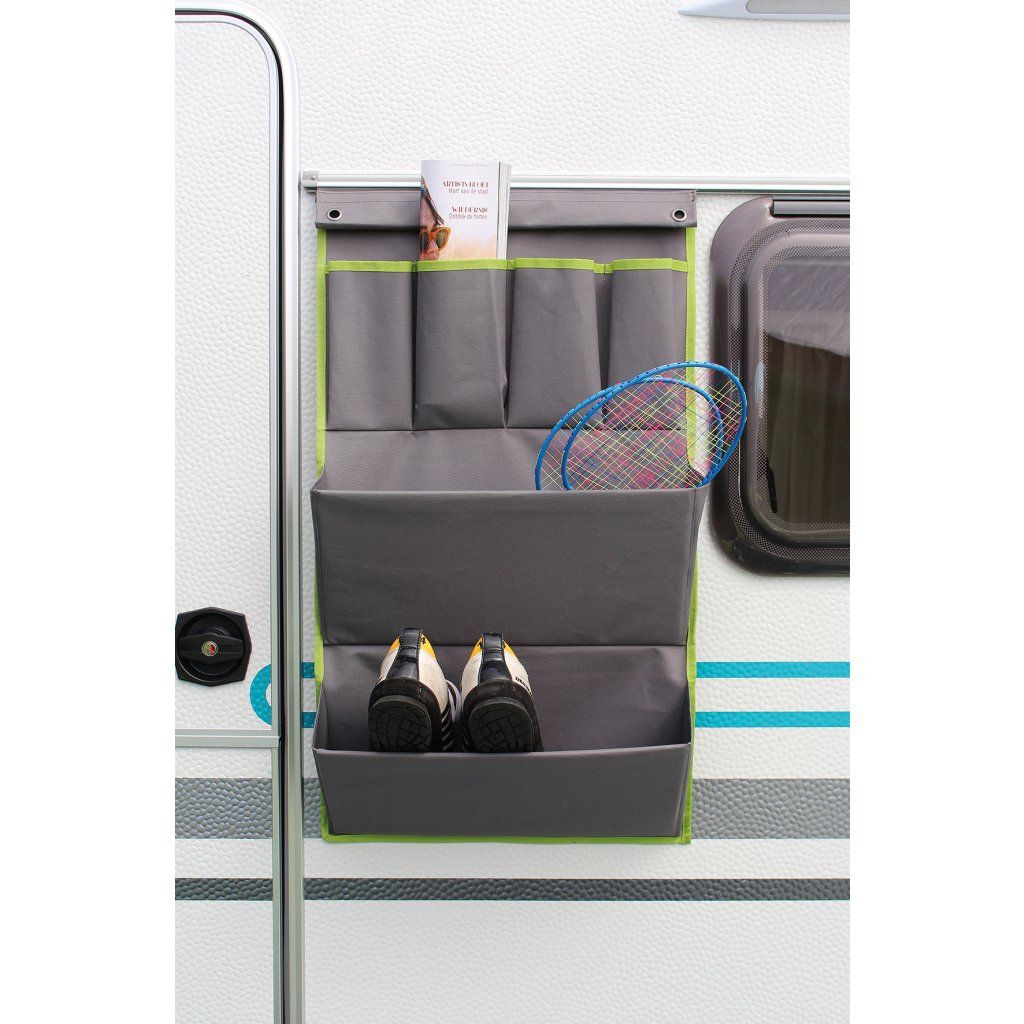 EUROTRAIL Organizér Bristol L je prostorný a odolný závěsný organizér, který pomáhá udržet pořádek doma, v karavanu, obytném voze, kanceláři či na chatě. Díky kombinaci 2 velkých a 4 menších kapes nabízí přehledné uspořádání věcí podle velikosti a účelu, takže vše máte rychle a bezpečně po ruce.