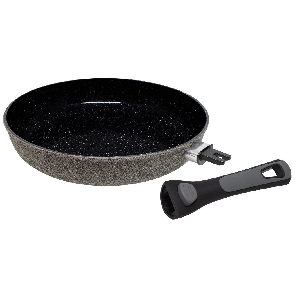 Pánev EUROTRAIL Stone Ø 28 cm je praktická volba pro vaření doma i v kempu, kde oceníte snadné čištění a úsporu místa. Díky odnímatelné rukojeti ji jednoduše uložíte do skříňky nebo zabalíte na cesty. Nepřilnavý keramický povrch umožňuje vařit s minimem tuku bez připalování. Ideální pro rychlou přípravu masa, zeleniny i snídaní bez zbytečné námahy.