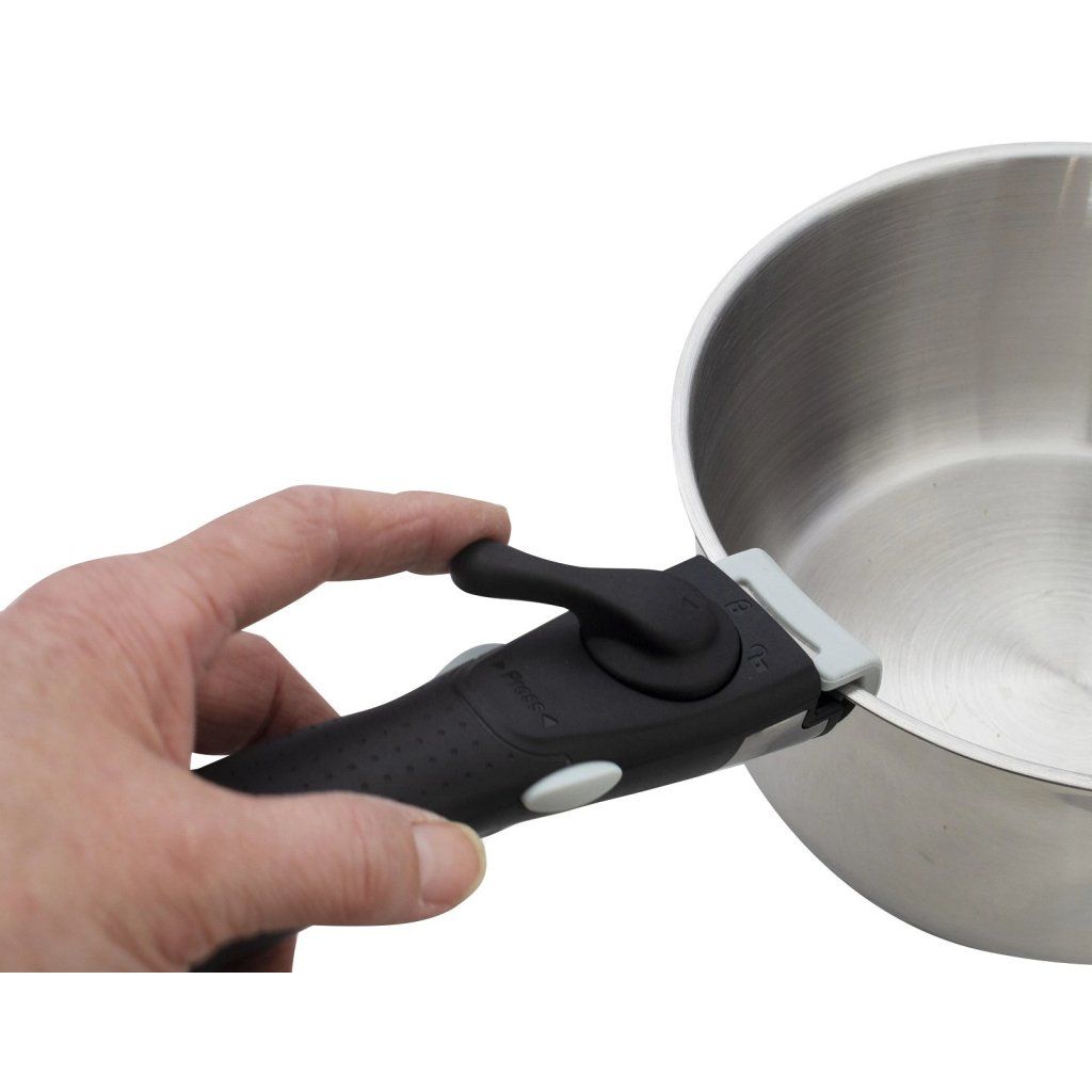 Odnímatelné madlo vám umožní přizpůsobit si používání podle aktuální potřeby. Při vaření ho jednoduše nasadíte, při skladování zase sundáte a ušetříte místo. Tento systém je ideální pro karavany nebo malé kuchyně. Navíc usnadňuje manipulaci i při mytí nebo použití v troubě.