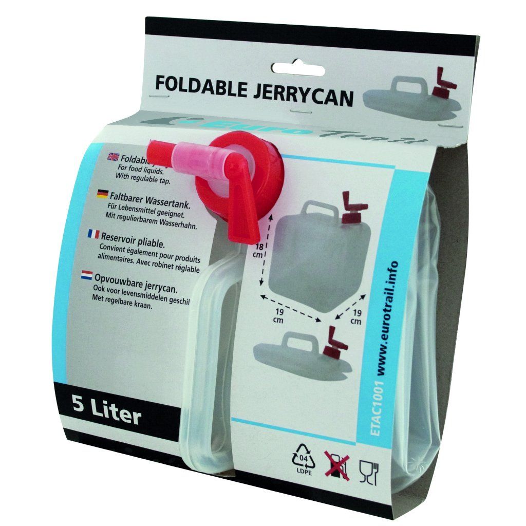 EUROTRAIL skládací kanystr o objemu 5 litrů je praktickým řešením pro přepravu a skladování vody při kempování, turistice nebo cestování karavanem. Díky skládací konstrukci šetří místo ve výbavě a po vyprázdnění jej lze snadno složit. Odolný polyethylen zajišťuje dlouhou životnost a bezpečné použití v různých podmínkách.