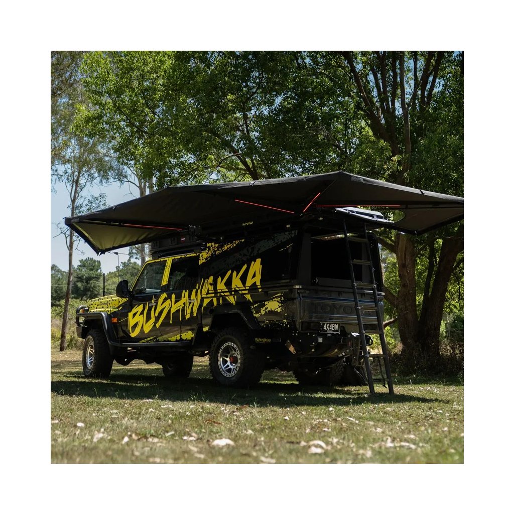 Bushwakka Extreme Darkness D-Zip je samonosná 270° markýza, která přináší kombinaci extrémní odolnosti, stability a chytrých funkcí pro náročné podmínky. Díky pevné hliníkové ENDO konstrukci, 320gsm Hexatough UV50+ voděodolnému polyesteru a chytrému D-Zip systému poskytuje 12 m² krytí, snadné použití a spolehlivou ochranu před sluncem i deštěm.