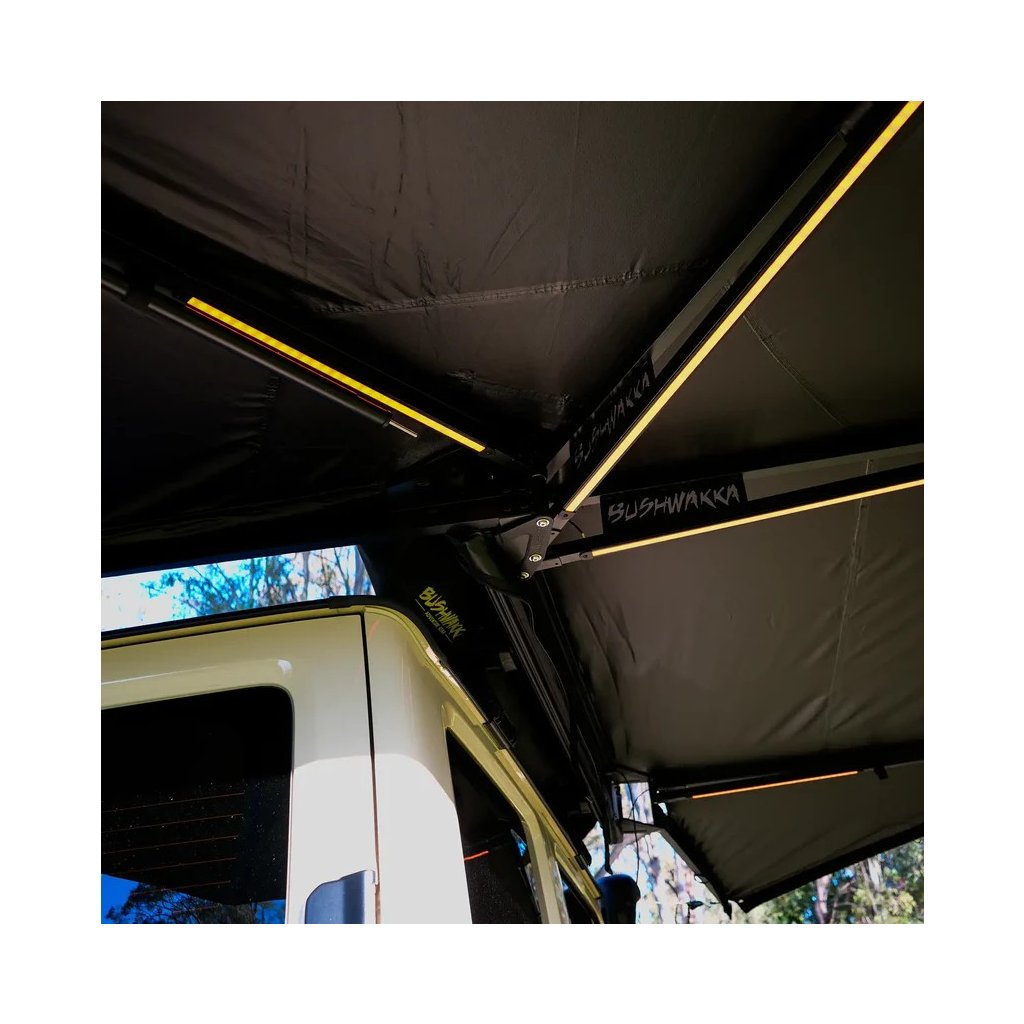 Bushwakka Extreme Mini Darkness je kompaktní samonosná markýza, která poskytuje 8 m² krytí, pevný hliníkový ENDO rám a voděodolnou 320gsm Hexatough UV50+ tkaninu. Díky vestavěnému LED osvětlení a stabilní konstrukci je ideální volbou pro dobrodruhy, kteří chtějí maximální ochranu v menším provedení.