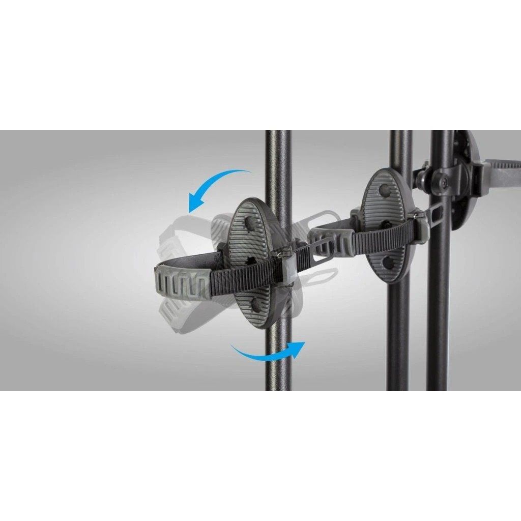 Držák rámů kol uchytí oválné i kulaté rámy většiny velikostí jednoduše a bezpečně. Každé kolo lze samostatně zamknout. Držáky lze otáčet dle potřeby.
