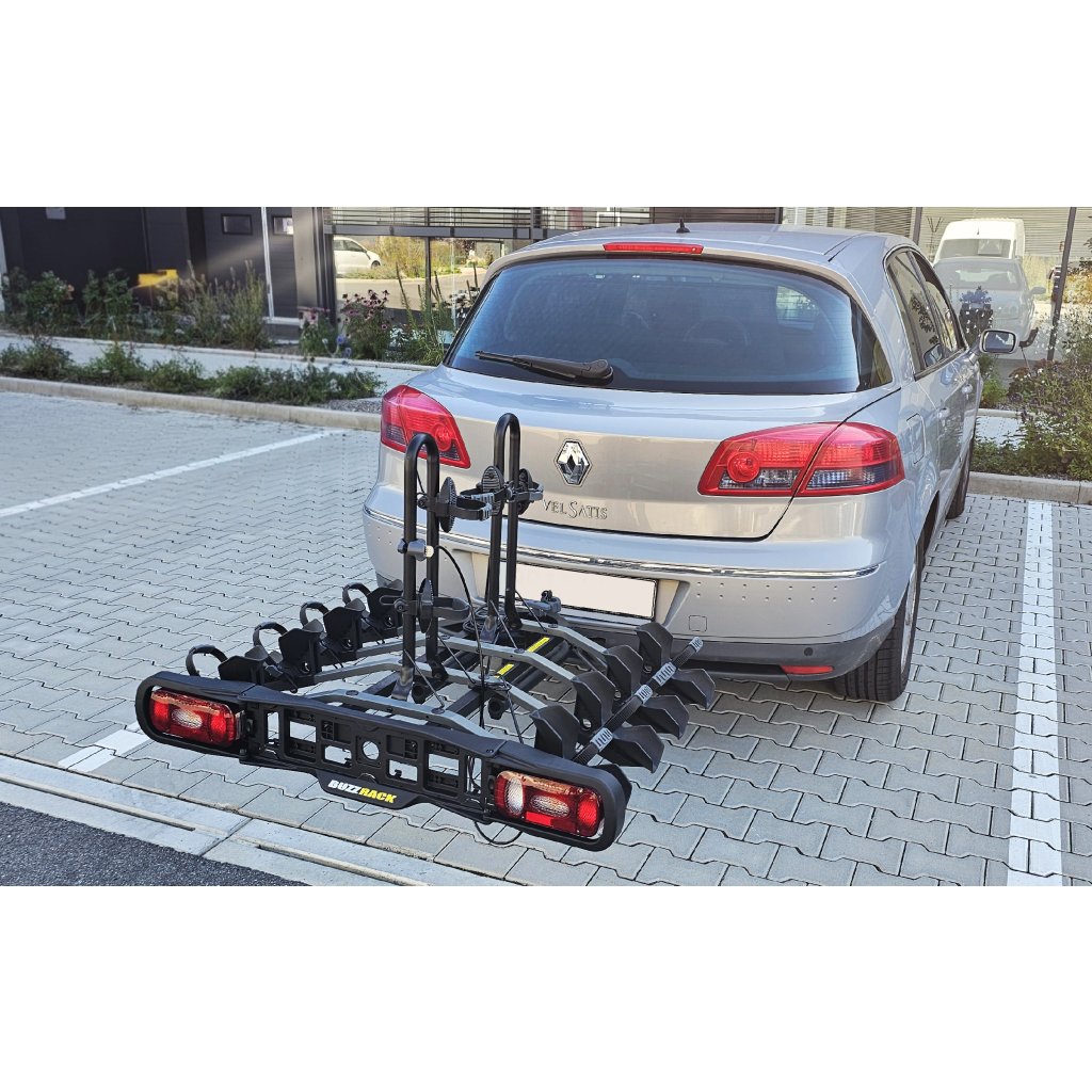 Dobře navržený nosič kol BuzzRacer 4 značky Buzz Rack je určen pro přepravu 4 kol. Základní ale velmi spolehlivý nosič kol na tažné zařízení, vybavený plnou světelnou rampou s 5-ti světly a 13 PIN zásuvkou. Konstrukčně BuzzRacer 4 vychází z modelů Eazzy a Quatro. Kolébky na kola jsou mohutnější pro lepší stabilitu při převozu jízdních kol.