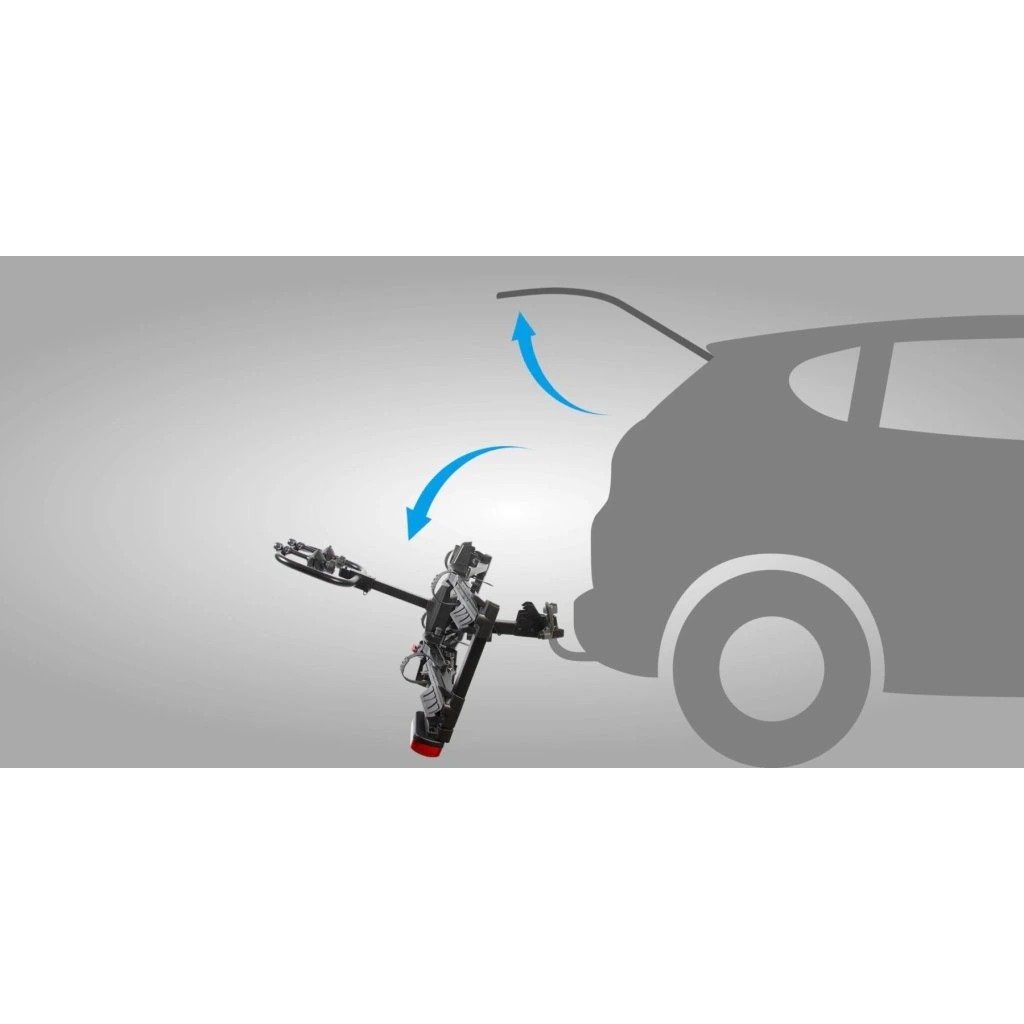 Nosič s jízdními koly je dokonale vyvážený a ve složeném stavu poskytuje dostatečný přístup do zavazadlového prostoru automobilu.