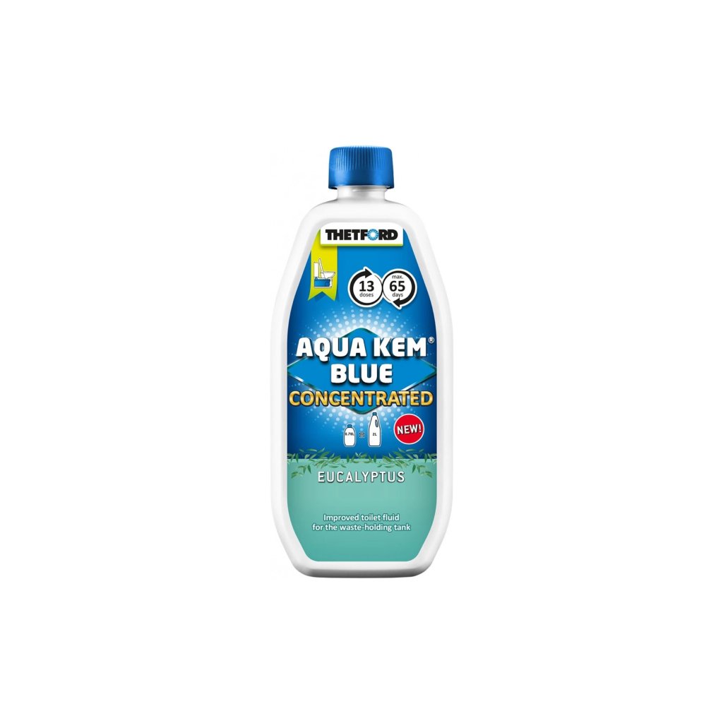 Thetford Aqua Kem Blue Eucalyptus koncentrát je koncentrovaná rozkladová chemie pro chemické WC s příjemnou vůní eucalyptu. Tento tekutý prostředek se dávkuje do fekální nádoby a ředí se vodou. Výborně rozkládá fekálie, redukuje zápach a tvorbu nežádoucích plynů. Koncentrované balení obsahuje stejný počet dávek jako 2l láhev.