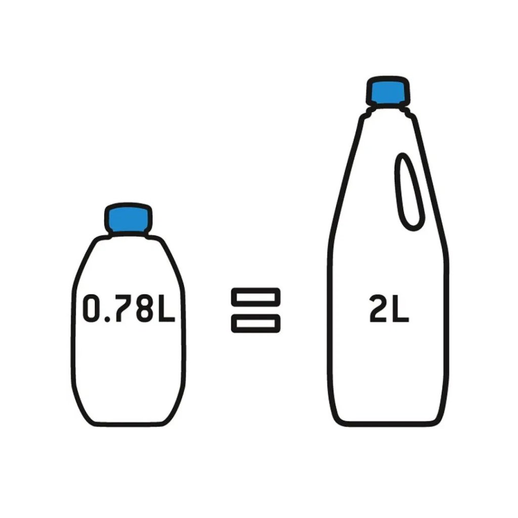 Balení o objemu 0,78 litry obsahuje 13 dávek, přičemž jedna dávka vydrží 3–5 dnů v závislosti na frekvenci používání a teplotě. Aqua Kem Blue koncentrát je tak velmi ekonomickým řešením pro každého, kdo hledá spolehlivou chemii do chemického WC, protože jedna láhev o objemu 0,78l nabízí stejný počet dávek jako láhev o objemu 2l.